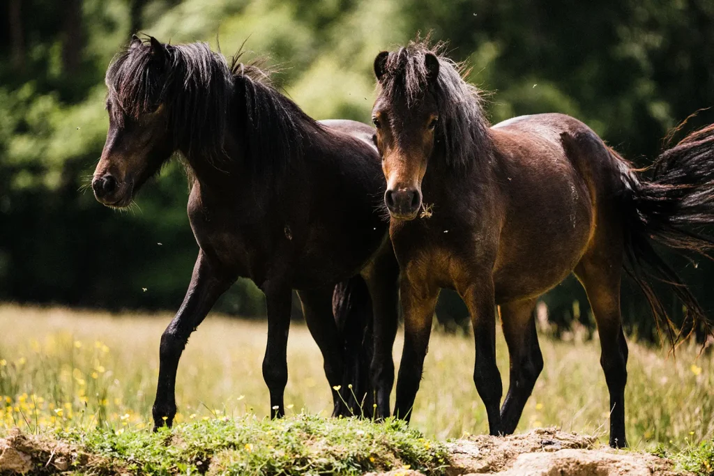 - Dartmoor ponies; ponies are a keystone species as their presence can have an huge impact on a diverse range of species. Lighter weight than cattle, they also have different mouth structures, with two sets of incisors that can nibble and bite as well as strong molars to grind tougher vegetation. Efficiently reducing dominant scrub and coarse grasses, this allows a wider variety of flora to flourish where the ponies have grazed. They constantly move around, particularly if a stallion is present with the herd, creating microhabitats with their hooves. They are hardy and resilient and require no supplementary feeding throughout the year.