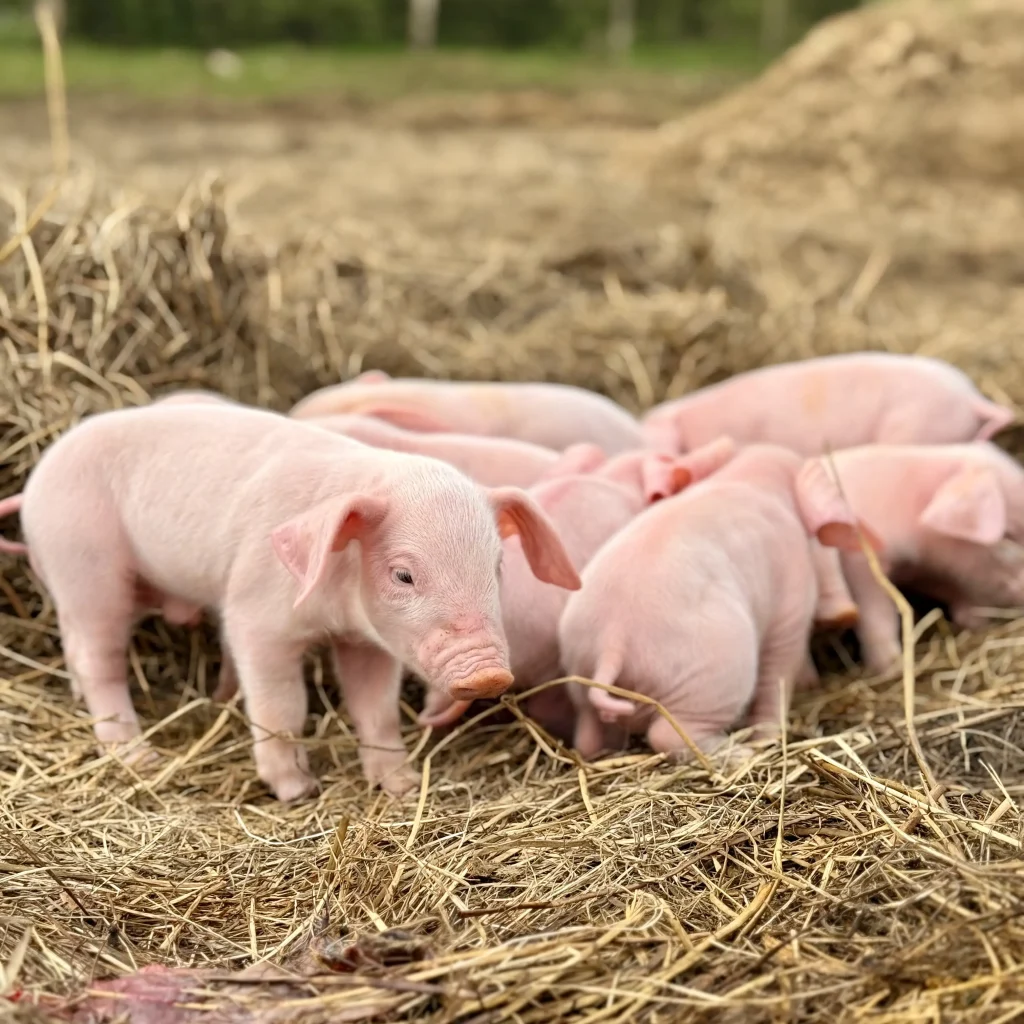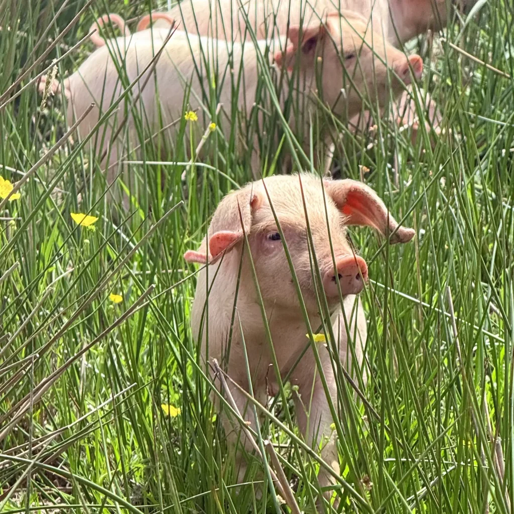 As our pigs spend their lives outdoors, they are exposed to sunlight much more than conventionally reared pigs. The resulting meat therefore has higher levels of vitamin D compared to pigs kept inside. Their diverse diet results in a better omega 3:6 ratio and is more nutritionally dense as a result of their diverse rich diet, a large proportion of which is pasture. Our pigs live a happy, natural and fulfilled life and spend their days adventurously enjoying our wildlife friendly farm.